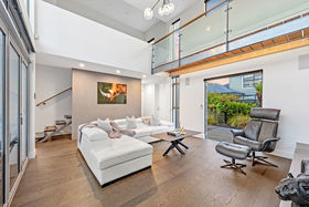Clean-lined architecture carries clearly indoors, led by double-height glazing and a void that drives sunlight deep into the lounge, refined by sweeps of timber detailing and finessed finishes across the 237sqm layout.